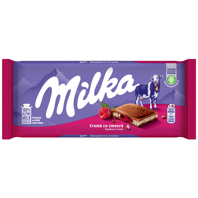 produs: milka Ciocolata Lapte si Crema Zmeura 100 g